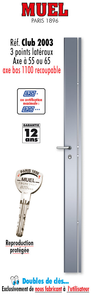 SERRURE CARÉNÉE 3 POINTS LATÉRAUX CLUB 2003 MUEL