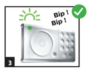 L’appairage du Lecteur de Badge est confirmé par 2 bips et une LED verte.