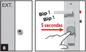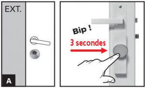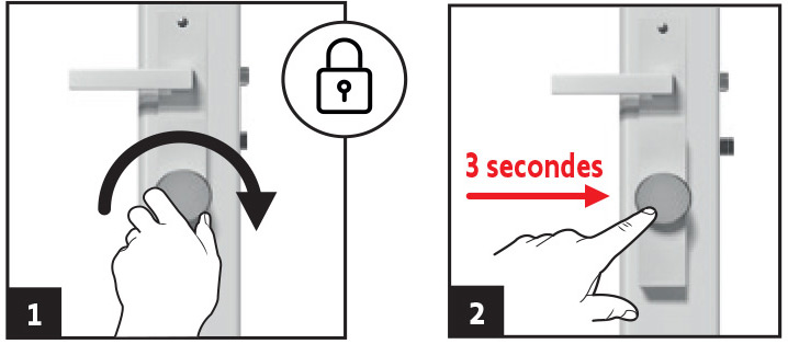 Positionnez la serrure en position verrouillée puis validez la fin de course en appuyant 3 secondes sur le bouton.