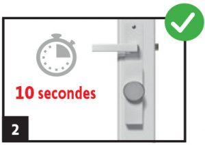 Le moteur déverrouille et ouvre la porte en rétractant le pêne demi-tour durant 3 secondes.